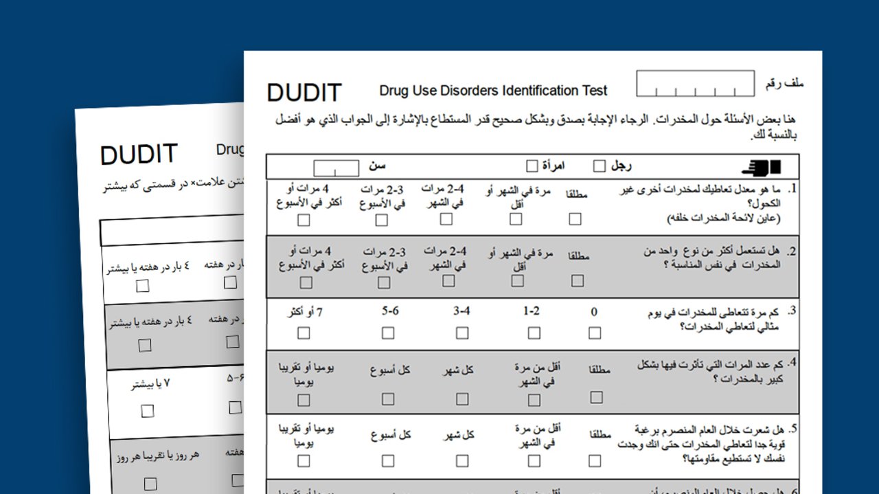 Die Suche nach sucht-spezifischen Instrumenten, die für Geflüchtete ohne Deutsch- oder Englischkenntnisse einsetzbar sind, kann eine große Herausforderung darstellen. Über unsere Suchfunktion können vor allem Übersetzungen der gängigen Instrumente aufgefunden werden, die online frei verfügbar sind.